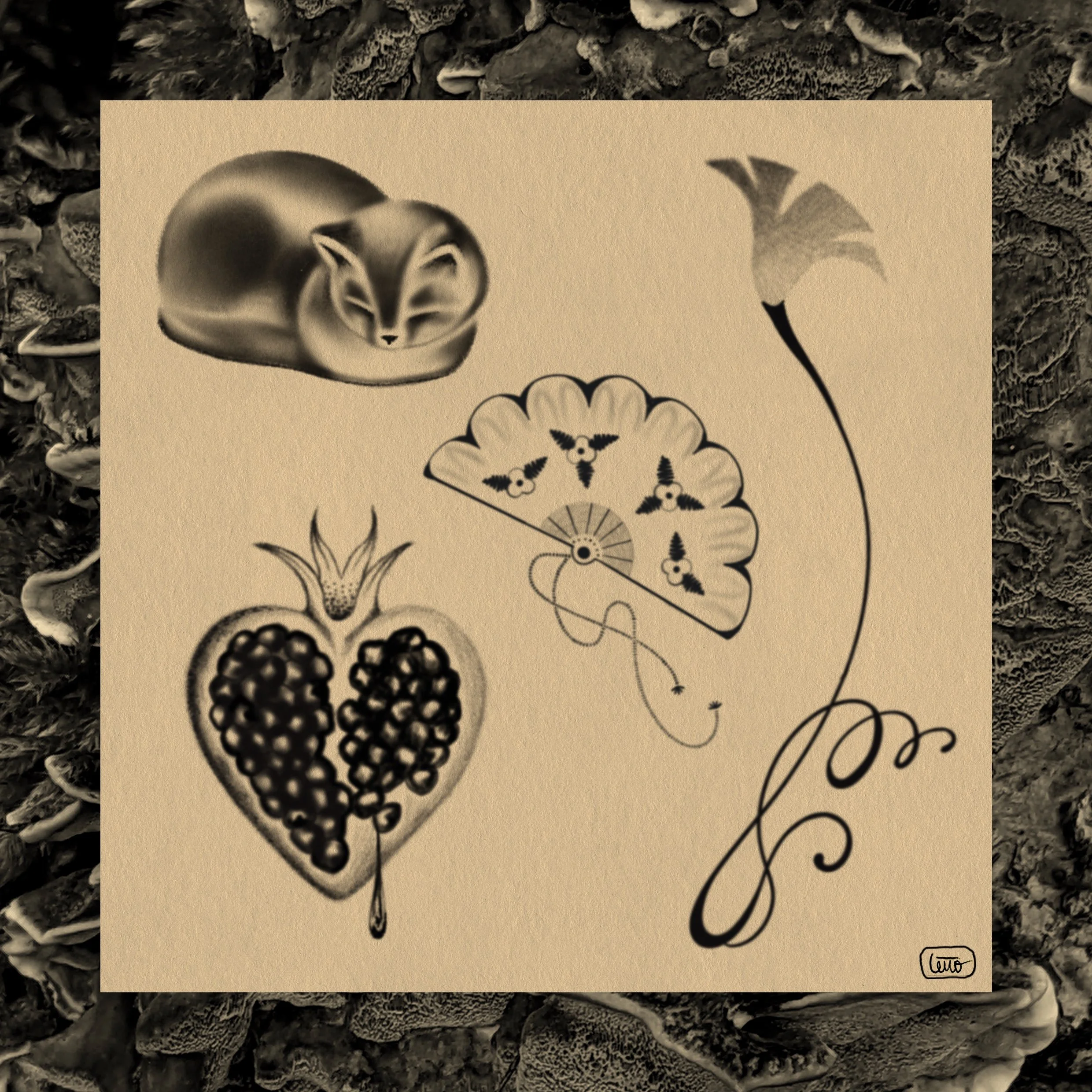 Lena is mostly working in a range of black and grey pieces. She loves playing with contrasts and shading, and is also open to integrate coloring on specific occasion.